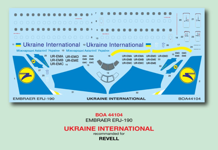 BOA144-104 Ukraine International ERJ190 Decal;