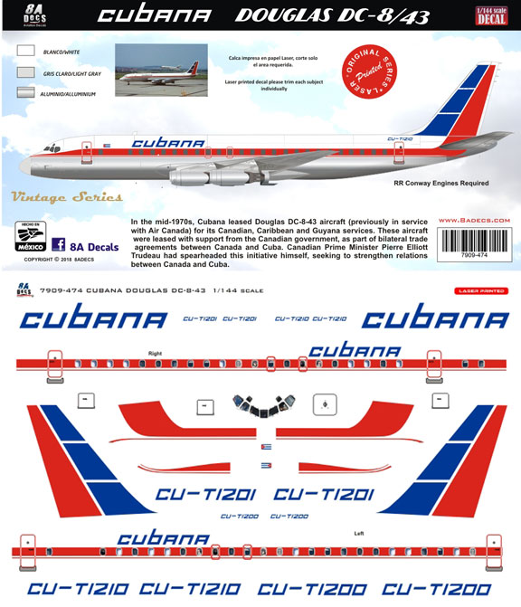 8A-474-Cubana-Douglas-DC-8-43-Instructions-and-Decal-812-W