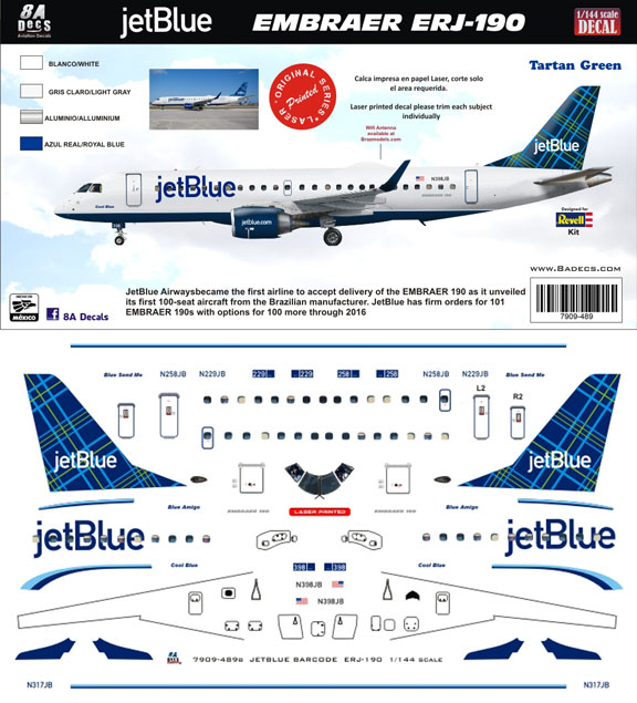 8A-489-TG-JetBlue-Embraer-190-Tartan-Green-Profile-and-Decal-812-W