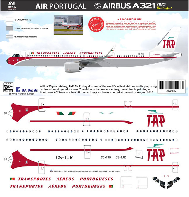 - 8A144-642 8A200-642 TAP Air Portugal ‘retro cs’ Airbus A.321NEO)