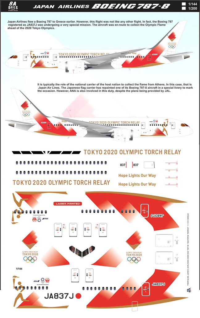 - 8A144-648 8A200-648 Japan Airlines ‘2020 Tokyo Olympics Torch Relay’ Boeing 787-8