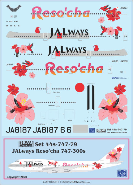 DRAW Decal released their first Japan Airlines 747 decals this week, featuring the Reso’cha scheme carried by the JAL Charter fleet.