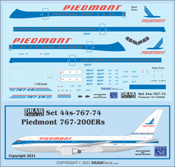 DW44-767-074 DW20-767-074 DW72-767-074 DW10-767-074 Piedmont Boeing 767-200