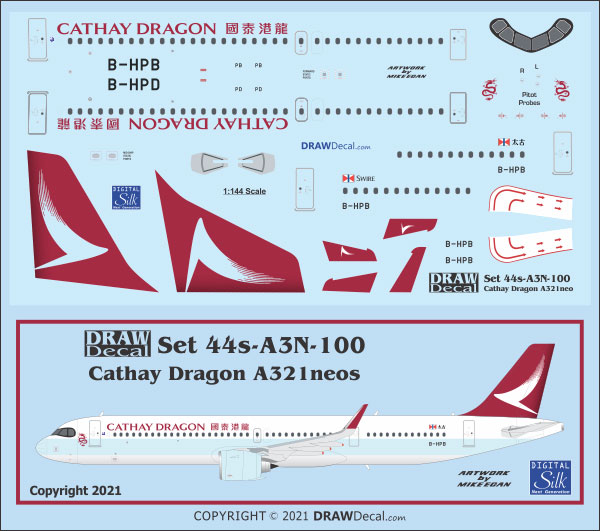 DRAW Decal has been busy this week, with new releases for the Boeing 747-400 and Airbus A.321NEO. They are also introducing an option to order some decals with corogard wing elements included, the Cathay Dragon A321NEO being the first.