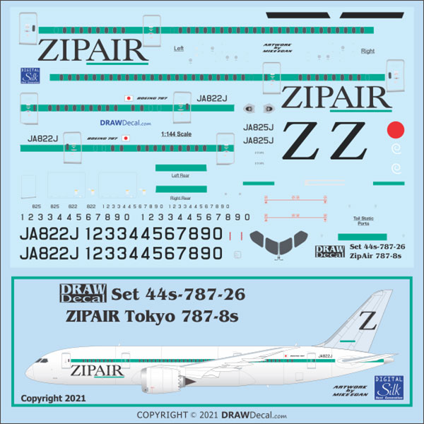 DW44-787-026 DW20-787-026 DW20-787-026T ZIPAIR Tokyo 787-8