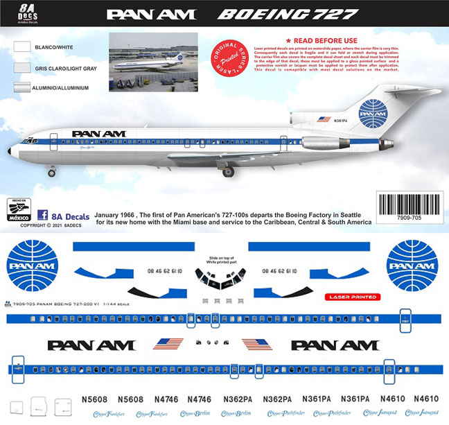 - 8A144-705 8A200-705 Pan Am Boeing 727-200