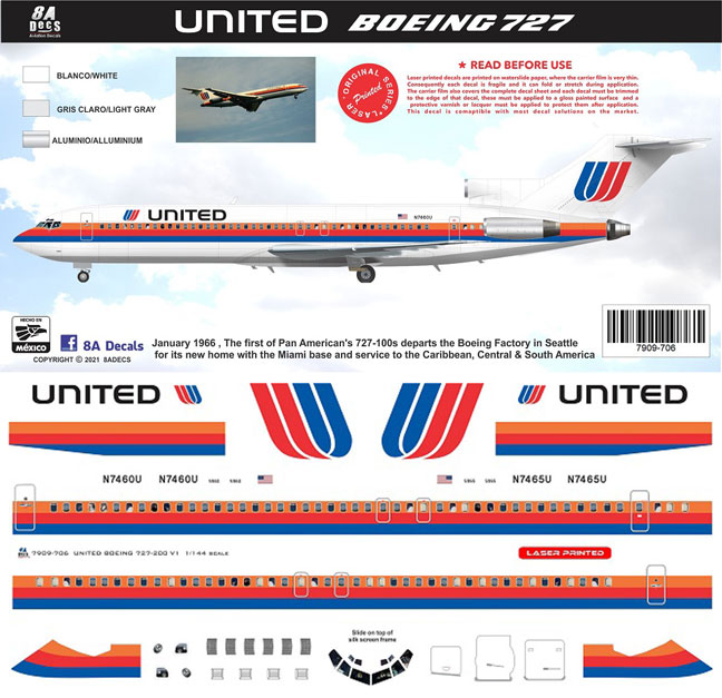 - 8A144-706 8A200-706 United Airlines Boeing 727-200