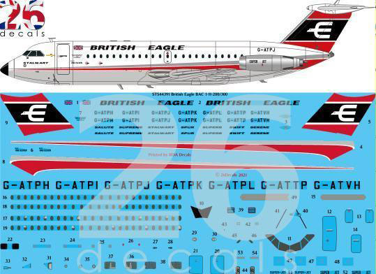 26 Decals has released five new screen printed decals for use on the Eastern Express BAC 1-11-200/-300/-400 kit: