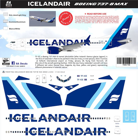 - 8A144-756B Icelandair (2022 cs) ‘Blue’ Boeing 737-MAX8
