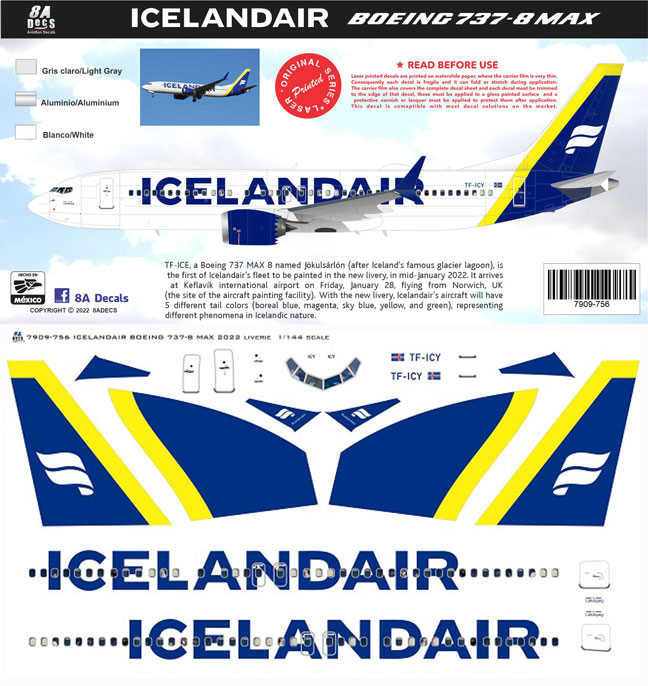 - 8A144-756Y Icelandair (2022 cs) ‘Yellow’ Boeing 737-MAX8
