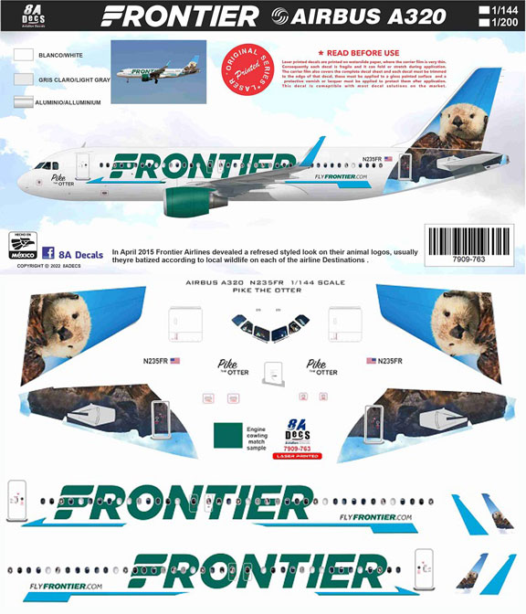 - 8A144-763 8A200-763 Frontier Airlines ‘Pike the Otter’ Airbus A.320NEO