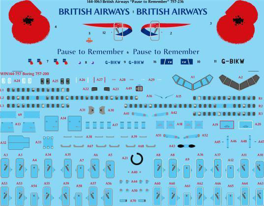 - TS44-1063 British Airways ‘Pause to Remember’ Boeing 757-200 (Zvezda kit)