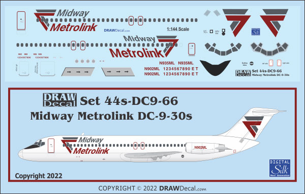 Finally, DRAW Decal ended the week releasing sets for Midway Airlines Metrolink Douglas DC-9-30 and McDD MD80 in 1/144 and 1/200 scales.