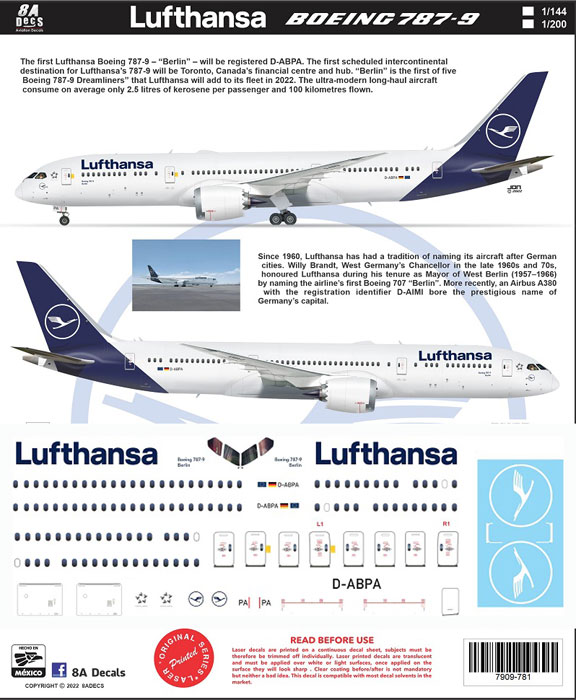 8A144-781 8A200-781 Lufthansa Boeing 787-9