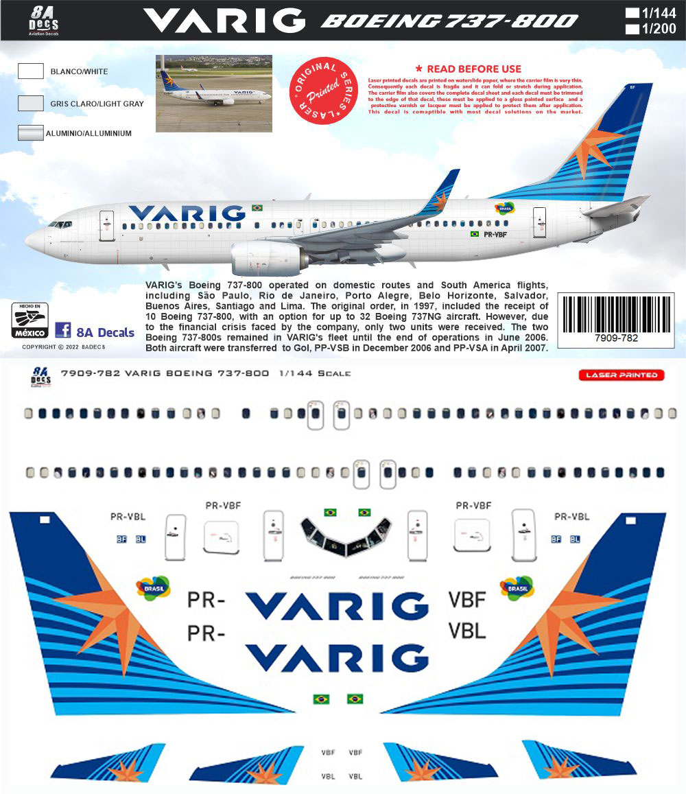 - 8A144-782 8A200-782 Varig Boeing 737-800