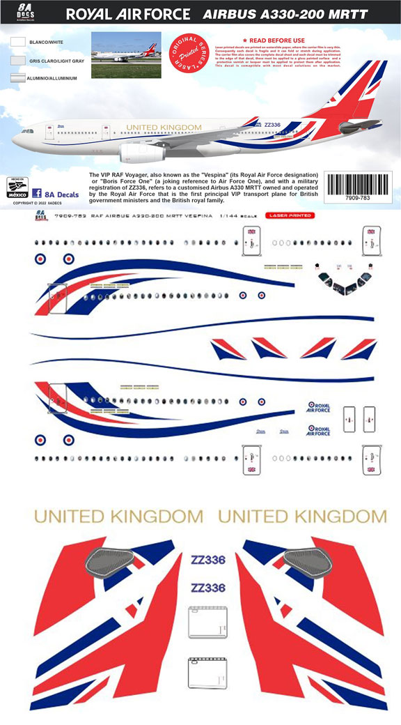 - 8A144-783 Royal Air Force ‘United Kingdom VIP’ Airbus A.330MRTT ‘Vespina’