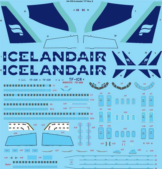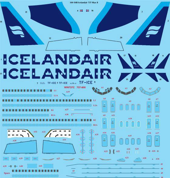 - TS44-1148 Icelandair ‘Sky Blue’ (aka ‘Crisp Blue’) Boeing 737-MAX8