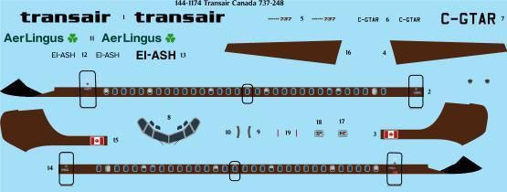 TS44-1174 Transair Canada Boeing 737-200 (with laser printed windows)