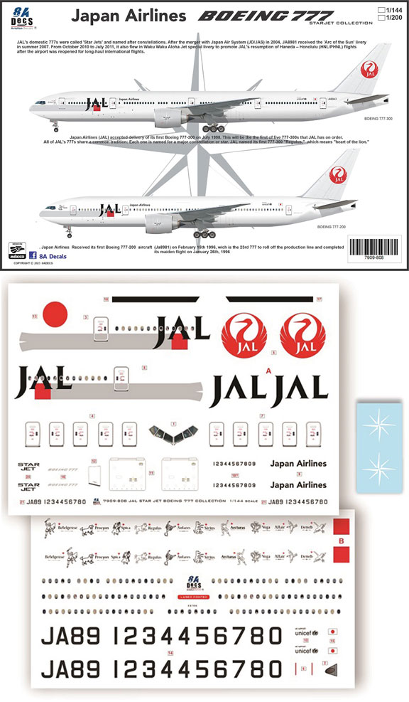 - 8A144-808 8A200-808 Japan Airlines Boeing 777-200 / -300 ‘Star Jet’ Collection