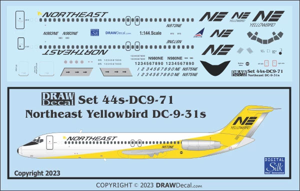 DRAW also released a series of decals for the Northeast ‘Yellowbird’ Douglas DC-9-31 in 1/144, 1/200, 1/1000 and 1/72 scales.