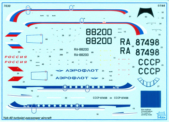8ADecs has released two new 1/144 scale decals designed to fit the Zvezda Yakovlev 40 kit introduced earlier in this announcement.