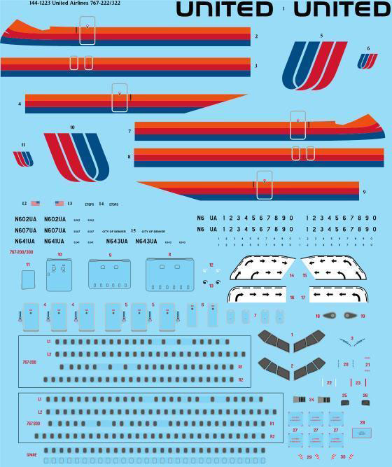 26Decals has re-released their United Airlines ‘Saul Bass’ cs artwork for the Boeing 767-200/300ER. The decal features a laser printed livery decal with a screen printed ‘details’ decal.