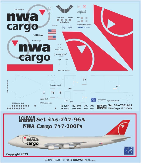 - DW44-747-096A DW20-747-096A DW10-747-096A DW25-747-096A NWA Northwest Airlines Cargo Boeing 747-200F