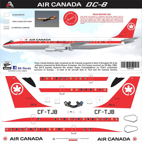 26Decal has released two new screen printed sets for the forthcoming X-Scale DC-8-50 kit.
