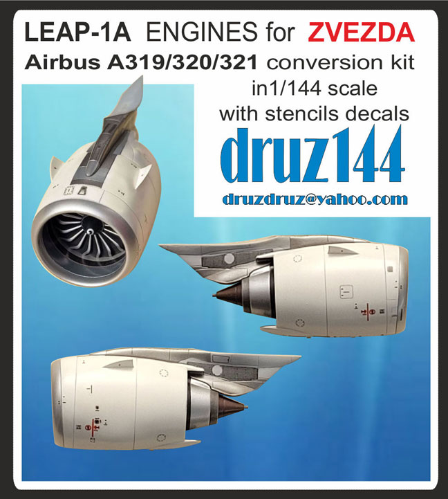 Druz Resin has released their CFM Leap-1A engines for the A.320NEO and A.321NEO kits by Revell and Zvezda. Note the curvature of the pylons is matched to the respective Revell or Zvezda wing.