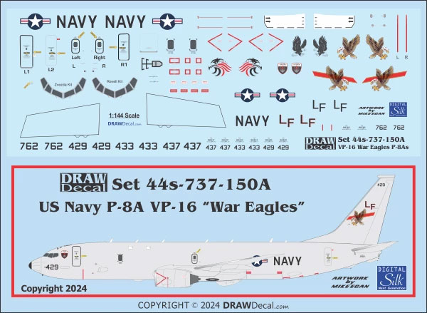 DRAW has updated their set 737-150 for the US Navy P-8A Poseidon, replacing this set with three, one for each squadron.