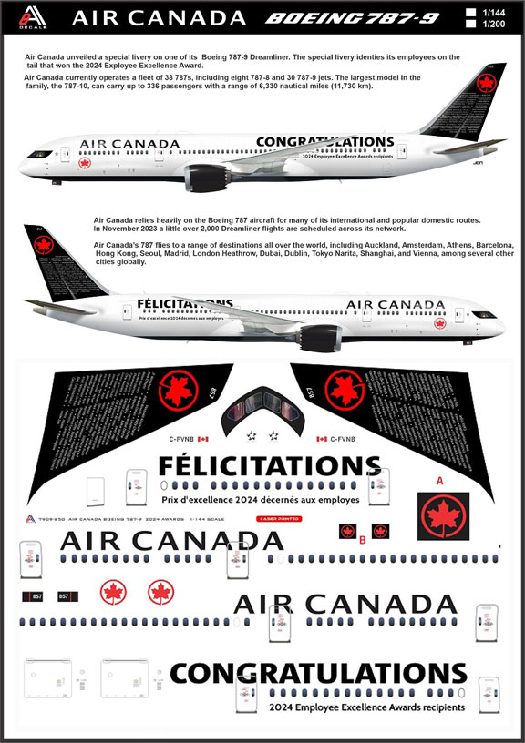 - 8A144-850 8A200-850 Air Canada ‘Congratulations 2024’ Boeing 787-9