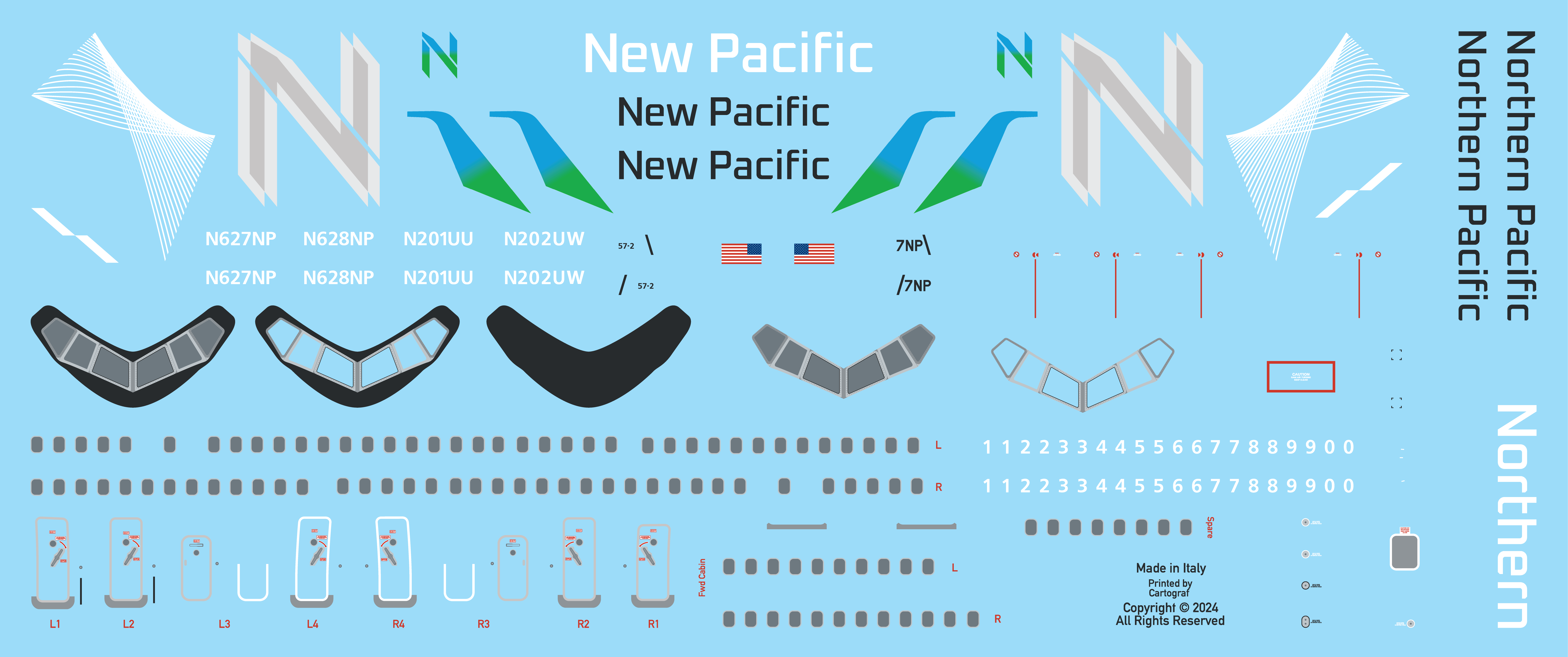 With artwork by Jennings Heilig, and printed in Italy by Cartograf, AHS has released a new 1/144 scale screen printed decal for New Pacific Airlines Boeing 757-200.