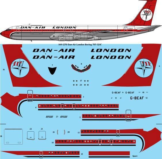 26Decal has released two laser printed sets for the Dan Air London Boeing 707 fleet.