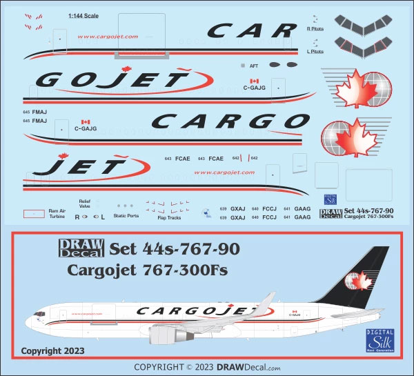 DRAW announced the Cargojet Canada Boeing 767-300ERF set. Cargojet operates a substantial fleet of Boeing 757-200F, Boeing 767-200F and Boeing 767-300F under their own name and for Amazon.