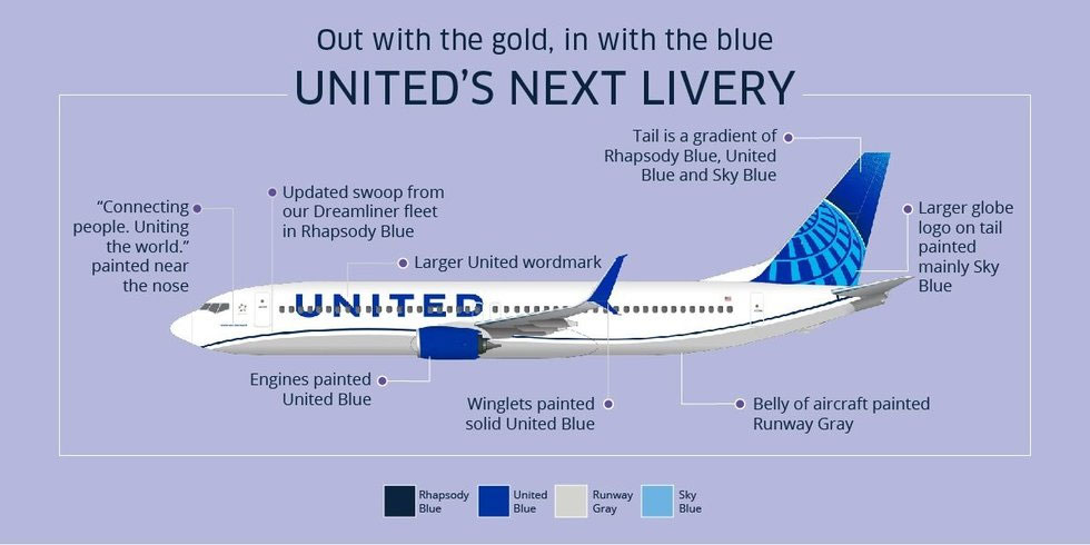 There is also an article on the Norebo site that describes the new livery, however some of the color references don’t match what United advertises.