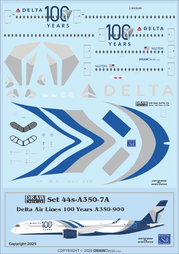DRAW has released a set for the Delta Airlines A.350-900 in their 100th Anniversary special markings.