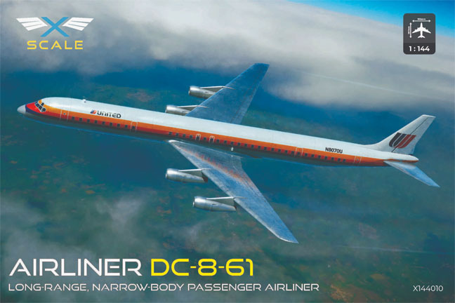 In early October, XScale released their new 1/144 scale Douglas DC-8-61 kit, building on their previous DC-8-30 and DC-8-50 kits. The kit has been released with a decal for United Airline’s ‘Saul Bass’ livery.