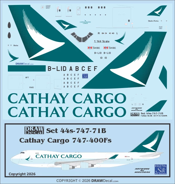 Finally, DRAW has added a set for the Cathay Pacific Boeing 747-400F featuring the larger titles, joining their sets -071 which feature the smaller ‘Cathay Pacific Cargo’ titles.