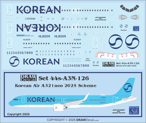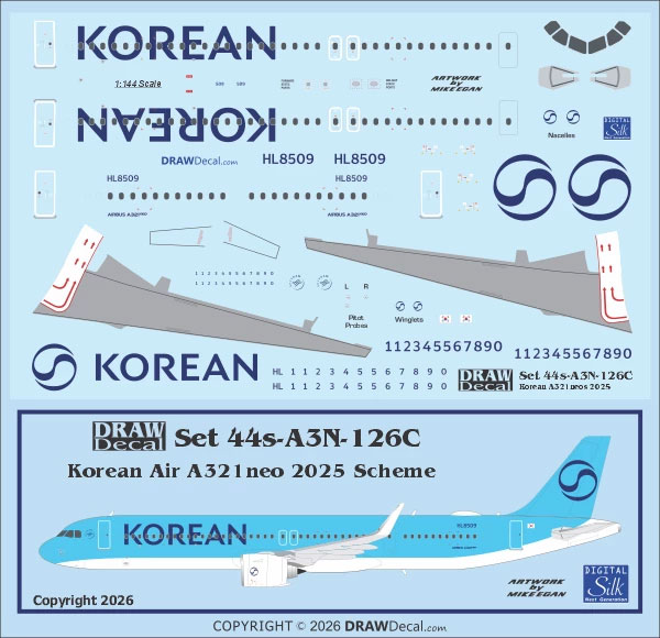 - DW44-A3N-126C DW20-A3N-126C Korean Air (2025 cs) Airbus A.321NEO (with Corogard)