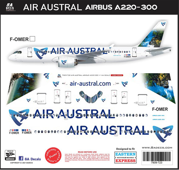 AHS released three new Eastern Express Airbus A.220-300 kit & decal options this week, optionally available with or without the 8ADecs A.220 General Stencils decal.