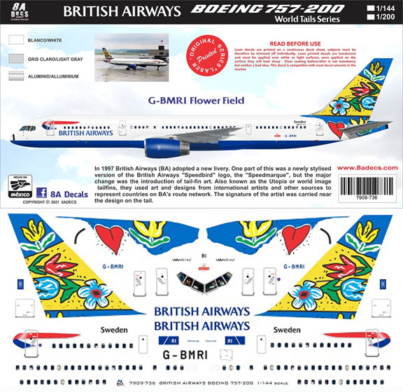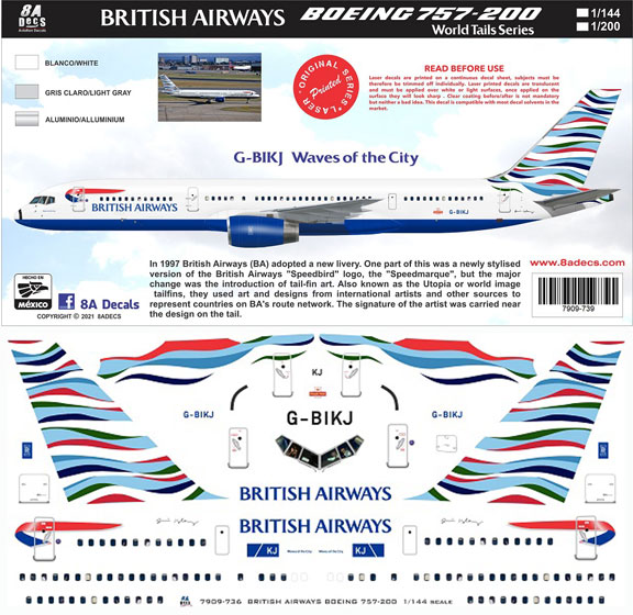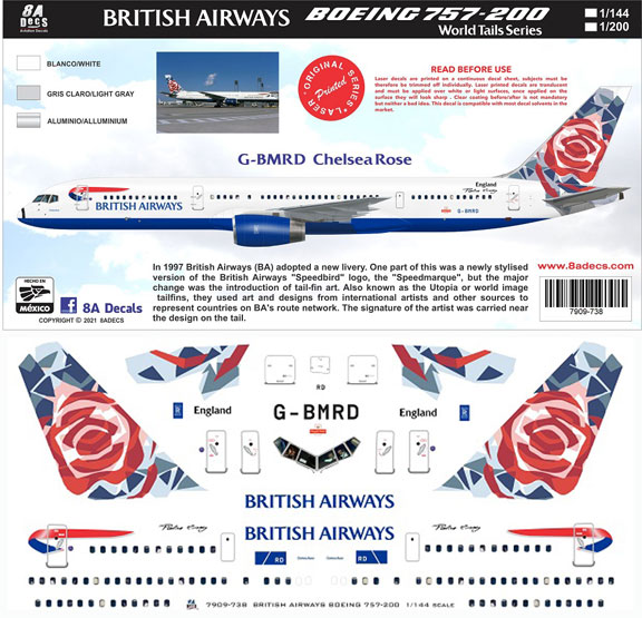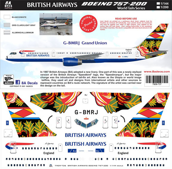 8ADecs has released four additional sets for the Zvezda Boeing 757 kit featuring more of the British Airways ‘World Tails’ (aka ‘Utopia’ scheme). Note that all four require Rolls Royce RB211-535C engines that are not provided in the kit.