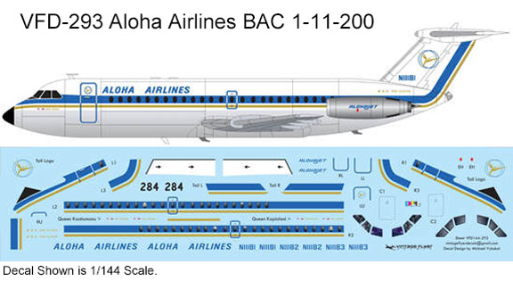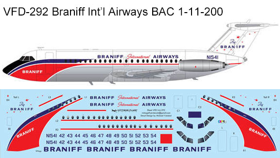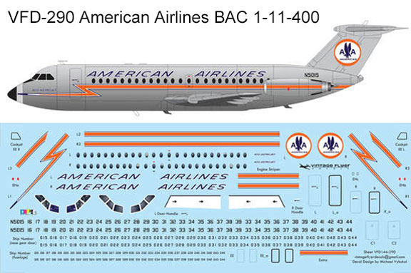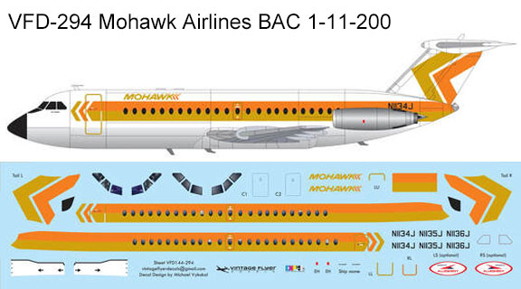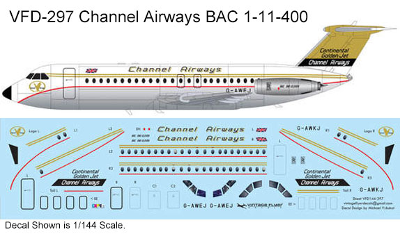 Vintage Flyer Decals has released 8 new sets for the 1/144 scale BAC 1-11 kits. There are versions designed to fit the Eastern Express kit and the Airfix kit (with ‘X’ suffixes on the product number).