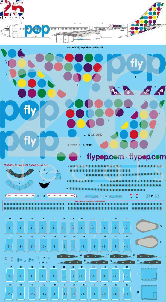 While I am on the subject of FunDekals, their airliner decals are all provided without instruction sheets, their intent being that you should download them from their web site, and print if desired. While this gives FunDekals the opportunity to improve and modify their instructions, it can be problematic for some customers who do not have color printers at their disposal. AHS always prints and includes a set of full color instructions with every FunDekals set, where available. If you have purchased a FunDekals sheet elsewhere, and need an instruction sheet, please contact me. I will be happy to mail a set to you for the cost of postage.