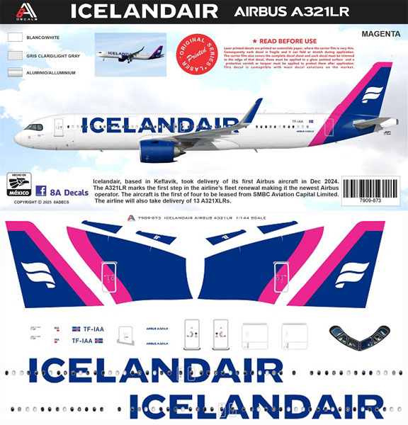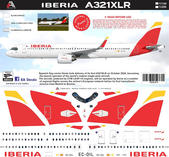 8ADecs has added a set for the QANTAS Airbus A.321XLR in 1/144 and 1/200 scales.
