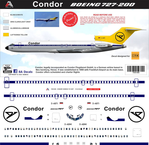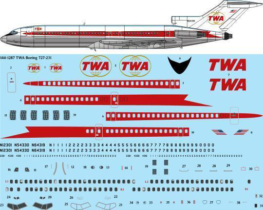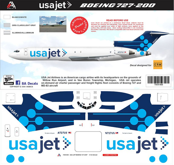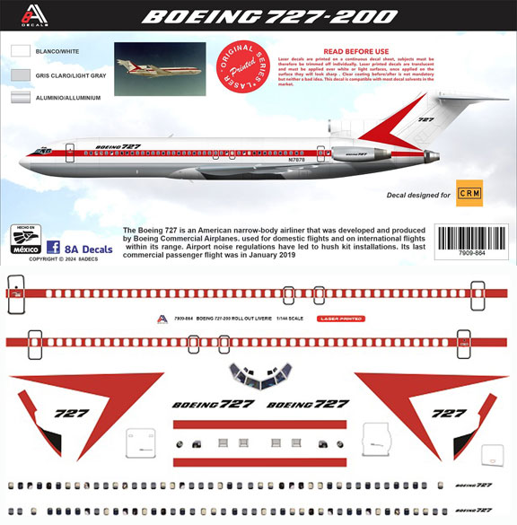 26Decals has released updated sets in both their ‘Screen Printed’ STS44 and ‘Laser Printed’ TS44 ranges for the recently released CRM Boeing 727-200 kit.
