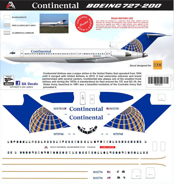 BraZ Models has commissioned a decal with Jennings Heilig for the Continental Airlines Boeing 757-200 and -300 fleets in the pre-United Airlines merger scheme worn from 1991 until 2010. With the extra ‘United’ titles provided, the post merger scheme for the ex CO fleet can be modelled, Note, at the present time, the registrations and fleet numbers provided are only for the Continental fleet of Rolls Royce RB.211-535E powered airframes.